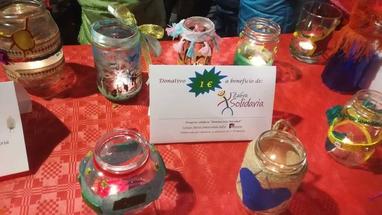 Los alumn@s de 1º de Primaria del colegio María Inmaculada, han decorado botes de cristal para venderlos en el Merkajoven y recaudar dinero para comprar alimentos y entregarlos a Zafra Solidaria. Preciosa iniciativa que ha sido un éxito, lo han vendido todo.