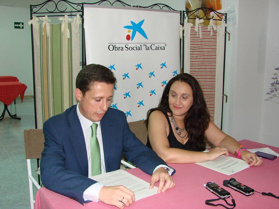 Miguel Ángel Pilar Rubio, director de la oficina de la La Caixa en Zafra y Nanda Sánchez, presidenta de Zafra Solidaria, firmaron un convenio para impulsar esta ayuda económica en las instalaciones de la ONG. El director de La Caixa en Zafra expresó su satisfacción por poder aportar estos 4.000 euros que se destinarán a ayudar a poner en marcha el comedor social de Zafra Solidaria y que pueda atenderse a las familias que lo necesiten.