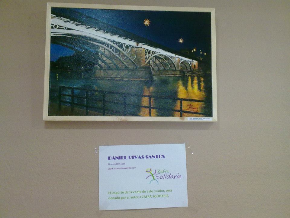 Daniel Rivas Santos, magnífico pintor, también quiere aportar su granito de arena a Zafra Solidaria. Para ello, el importe de la venta de uno de su cuadros que tiene expuestos en la Cafetería Sevilla, «PUENTE DE TRIANA» será donado íntegramente a nuestra ONG.