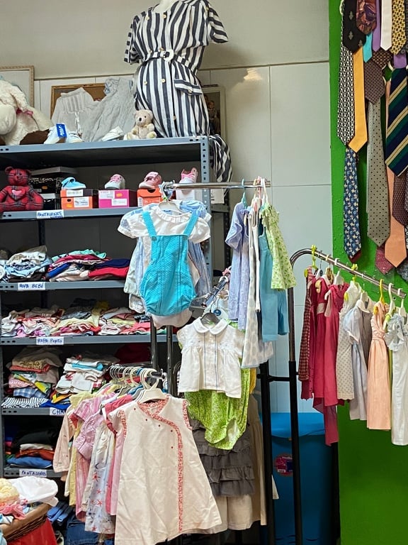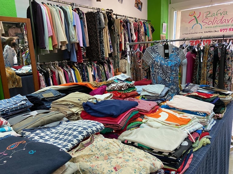 Ropa para todas las edades, bazar, libros y las artesanías del grupo de costureras de Zafra Solidaria.