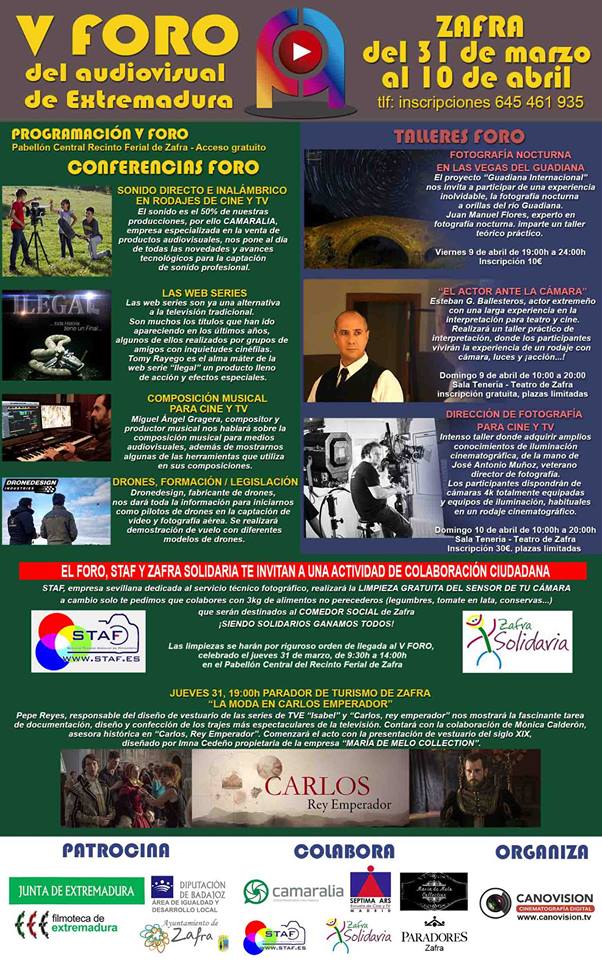 V FORO del audiovisual en Extremadura, Zafra del 31 de marzo al 3 de abril.