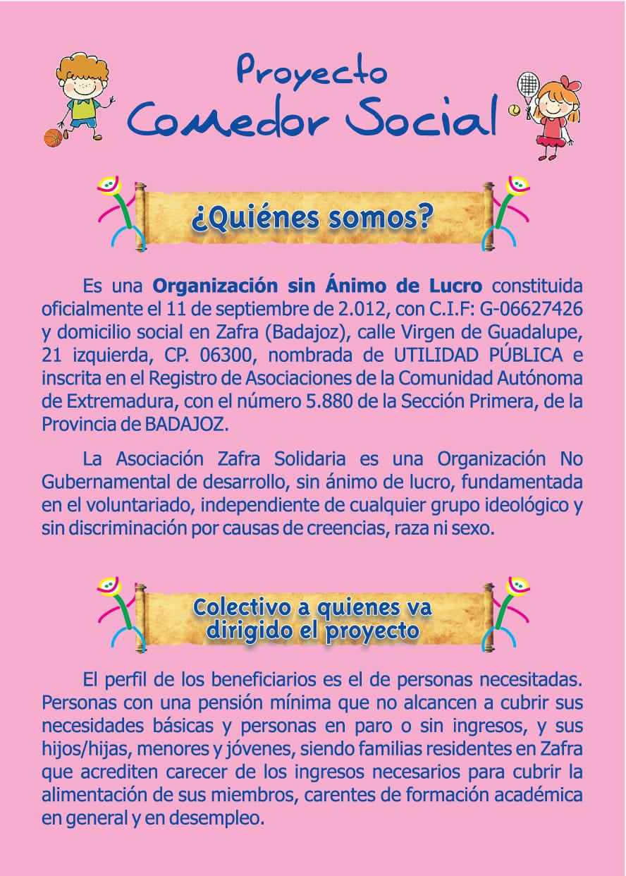ZAFRA SOLIDARIA INICIA UNA CAMPAÑA DE CAPTACIÓN DE SOCIOS PARA GARANTIZAR EL COMEDOR SOCIAL